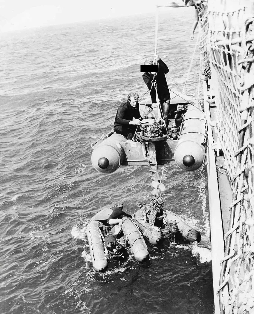 Тонущий «Бельграно» с другого ракурса. Качество так себе, но на корме видно двух человек: это капитан 1 ранга Эктор Бозо и старшина Рамон Баррионуэво, готовящиеся покинуть корабль последними