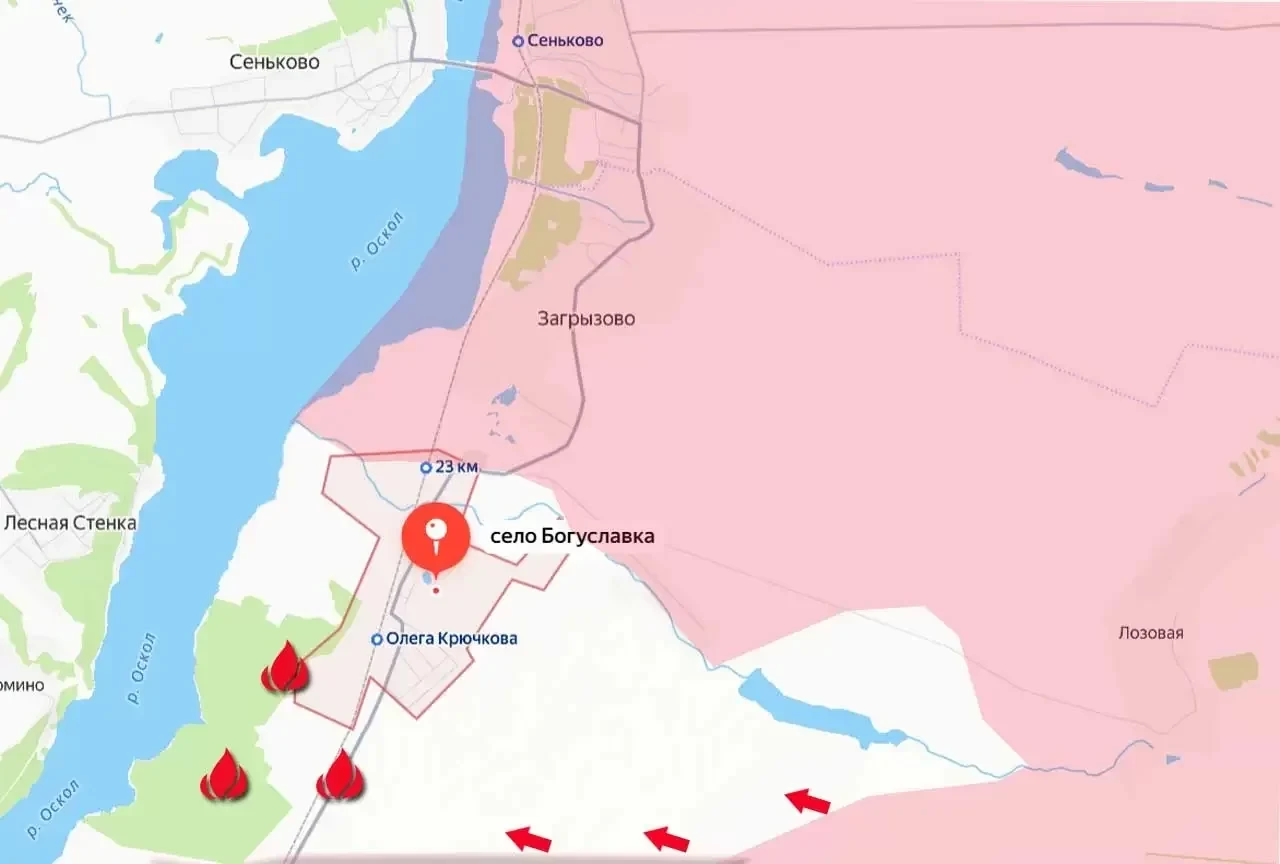 Первые часы наступившего 2026 года ознаменовались рядом успехов на фронте. Поступают сообщения о том, что российские войска полностью заперли подразделения противника в Богуславке Харьковской области. Село это находится южнее Купянска, на левом берегу реки Оскол.