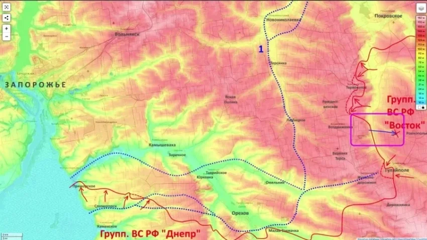 Продвижение идёт и в Запорожской области. Там российская армия расширяет зону контроля в районе Малокатериновского лимана в Приморском. Речь идёт о южном береге реки Конка на месте её впадения в Днепр (Каховское водохранилище).
