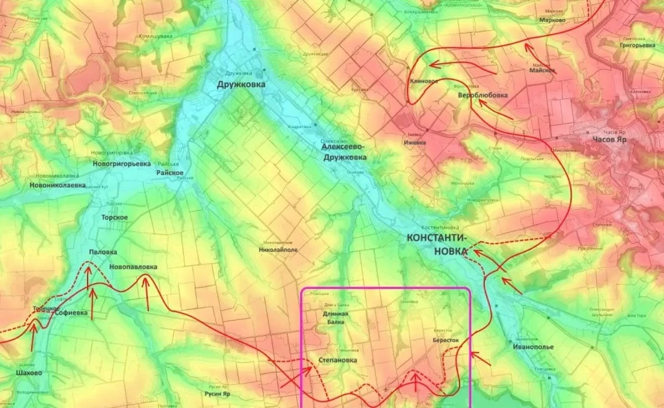 На сегодняшний день крайне напряжённая ситуация складывается в районе Константиновки. Согласно поступающим данным, российские подразделения успешно развивают наступление как в самом городе, так и в его окрестностях, планомерно сжимая кольцо окружения.
