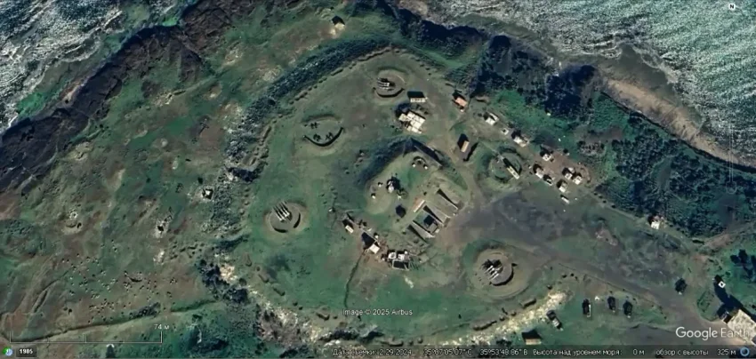 Спутниковый снимок Googlе Eаrth: позиция ЗРК С-125М1 на побережье в 8 км южнее города Банияс. Снимок сделан в феврале 2024 года