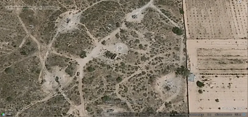 Спутниковый снимок Googlе Eаrth: позиция ЗРК С-125-2М «Печёра-2М» в 3 км западней города Исмаилия. Снимок сделан в июне 2025 года