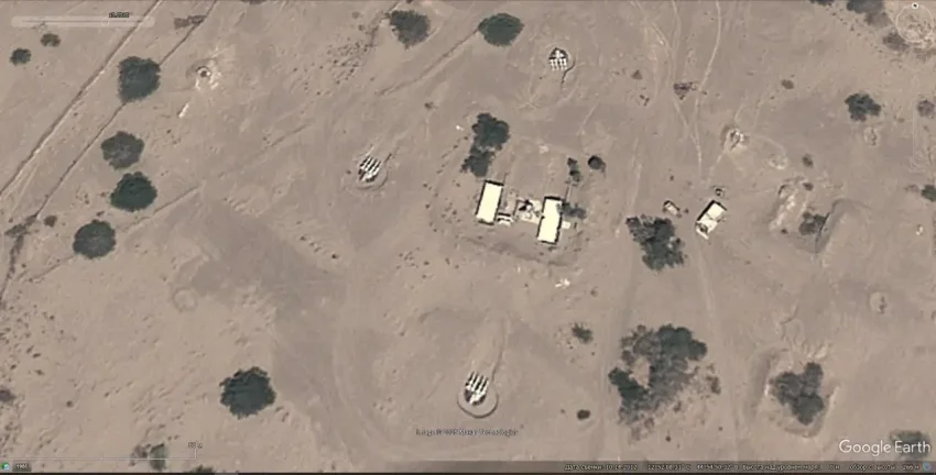Спутниковый снимок Googlе Eаrth: позиция ЗРК С-125М на авиабазе Юттарлай в провинции Раджастан. Снимок сделан в марте 2025 года