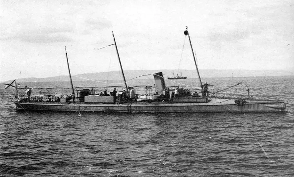 Потому эсминцы в Первой мировой войне занимались не только торпедными атаками, но и минными постановками, контрминными операциями, патрулированием и сопровождением, набеговыми операциями. И вообще, первый выстрел на морях Первой мировой войны совершил британский эсминец «Ланс», стрелявший по немецкому минному заградителю «Кёнигин Луизе», который в историю тоже вошел, так как на его минах подорвался и утонул крейсер «Амфион», первая потеря Великобритании в той войне.