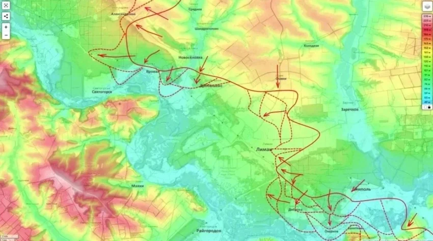 Достаточно сложная обстановка сохраняется в районе Красного Лимана. Российские войска прорвались к городу с севера, завязав бои в жилой застройке. Несмотря на циркулирующие в Сети слухи о полном контроле над северной частью города, Юрий Подоляка призывает к сдержанному оптимизму: идёт сложная работа по закреплению на занятых рубежах.