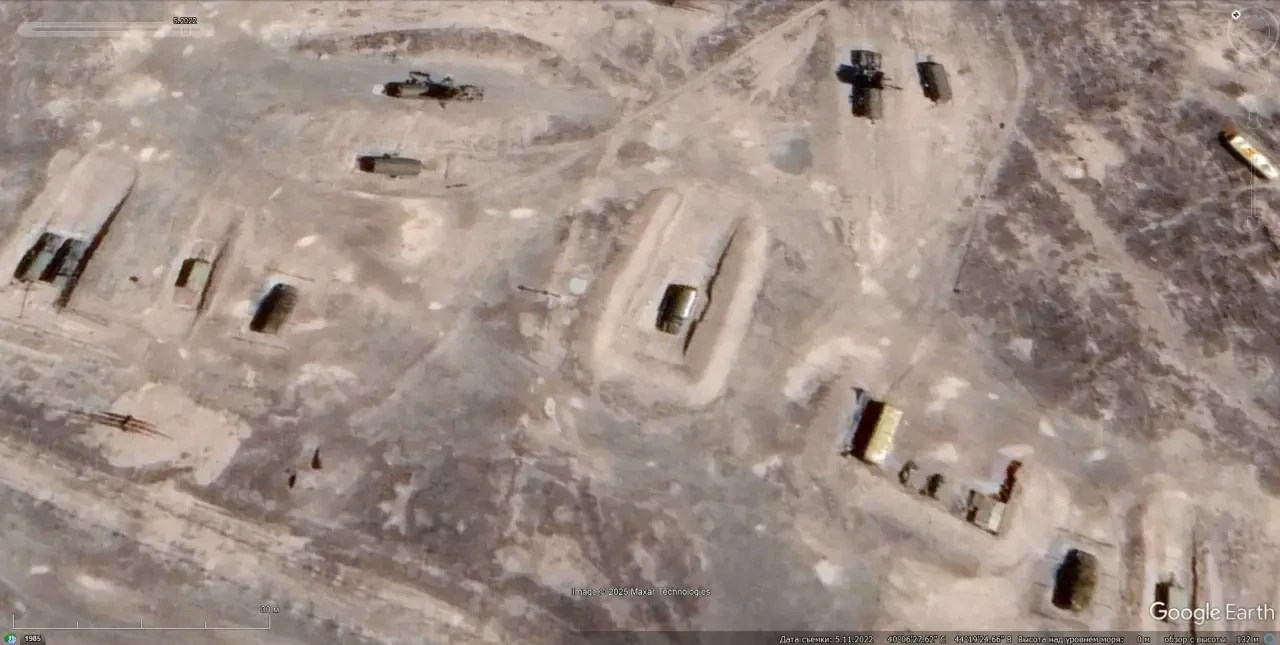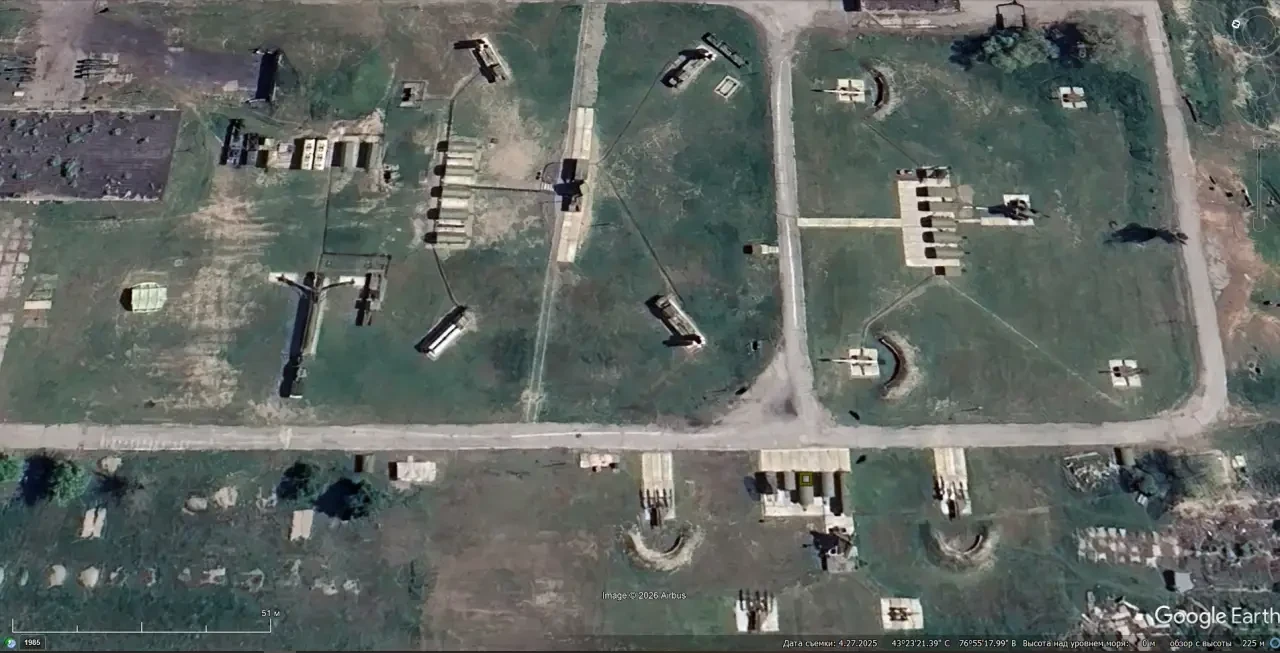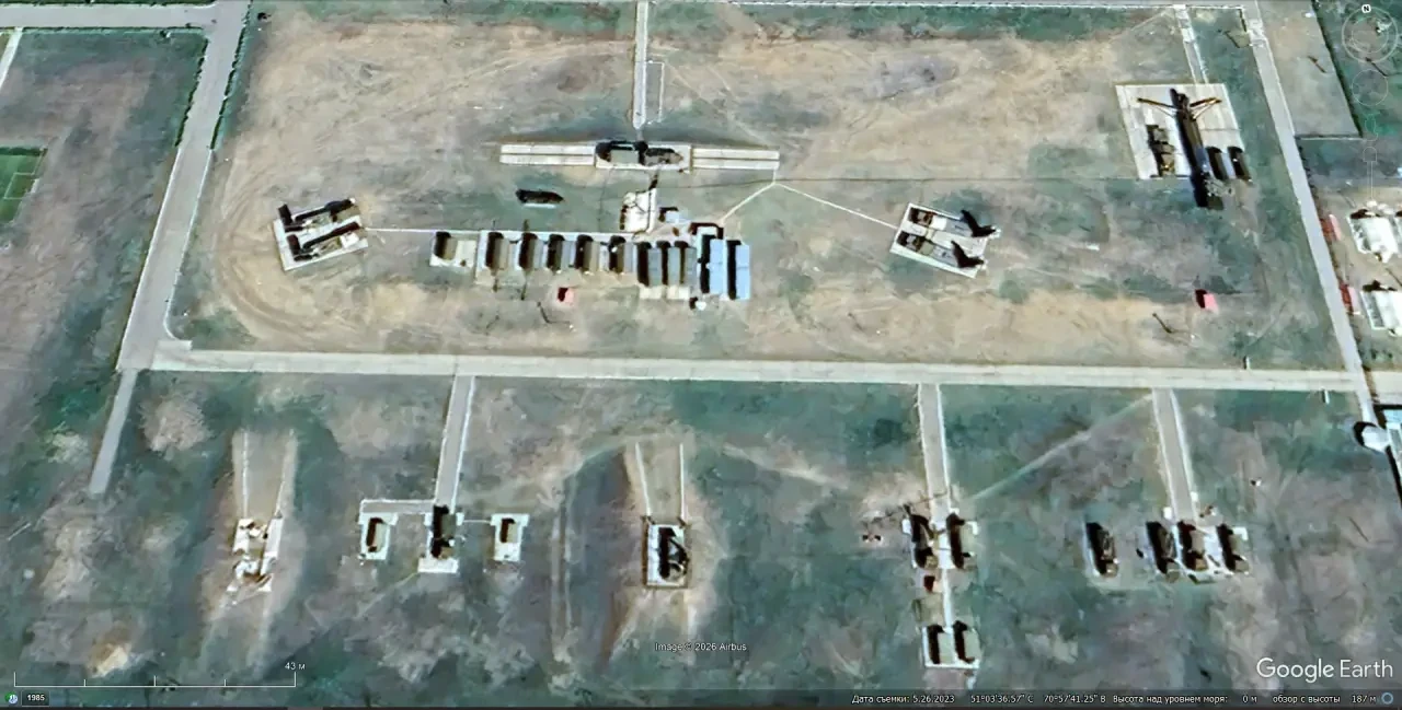 Спутниковый снимок Googlе Еarth: позиция ЗРС С-300ПС под Карагандой. Снимок сделан в мае 2025 года