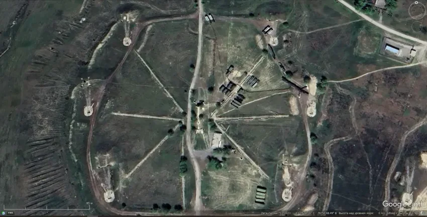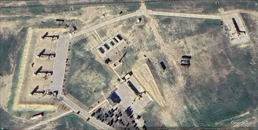 Спутниковый снимок Googlе Еarth: ЗРС С-300ПС юго-западней Алматы на бывшей позиции ЗРК С-200ВМ. Снимок сделан в мае 2023 года