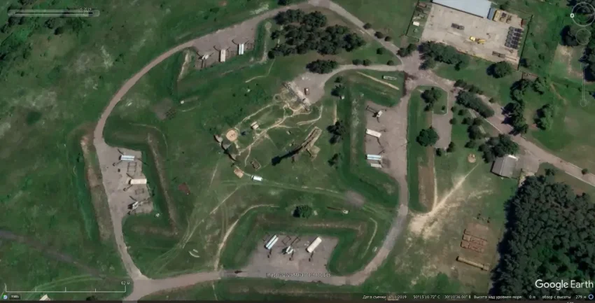 Спутниковый снимок Googlе Еarth: позиция ЗРС С-300ПТ в 40 км юго-западней Минска. Снимок сделан в августе 2022 года