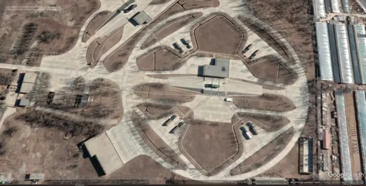 Спутниковый снимок Googlе Еarth: позиция ЗРС С-300ПМУ-2 в 15 км западней города Далянь. Снимок сделан в марте 2022 года