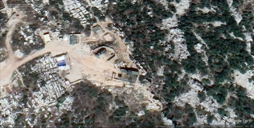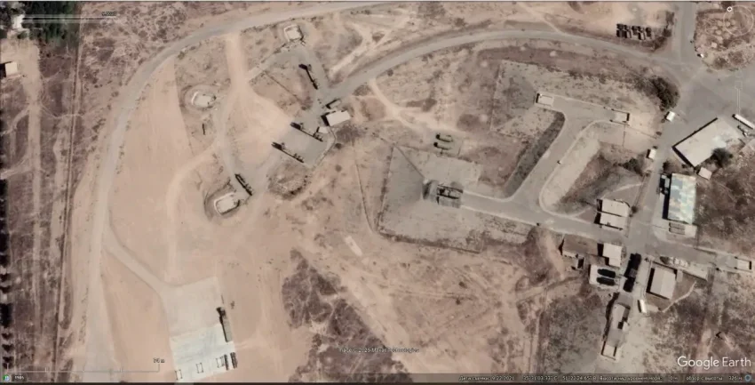 Спутниковый снимок Googlе Еarth: пустая огневая позиция ЗРС С-300ПМУ-1 в 3 км восточней аэродрома Казантзакис. Снимок сделан в феврале 2025 года