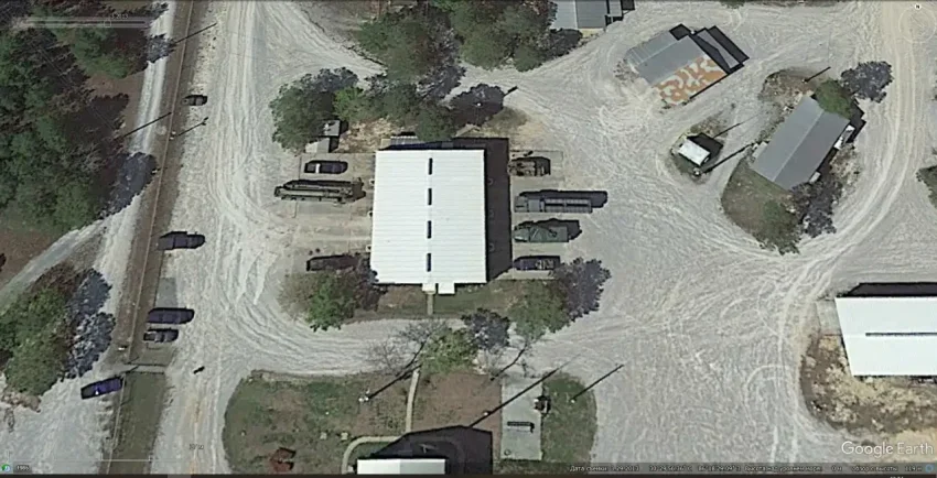 Спутниковый снимок Googlе Еarth: макет СПУ из состава ЗРС С-300ПС на британском полигоне Спейддам. Снимок сделан в июне 2018 года