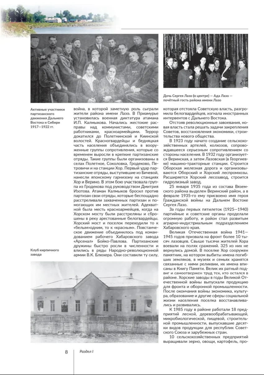 Юбилейная книга к 120-летию посёлка Хор (От истоков к будущему. Посёлок Хор. 120 лет / сост. Б. К. Кузнецов — АО «Хабаровская краевая типография», 2017. — 204 стр.: ил.):