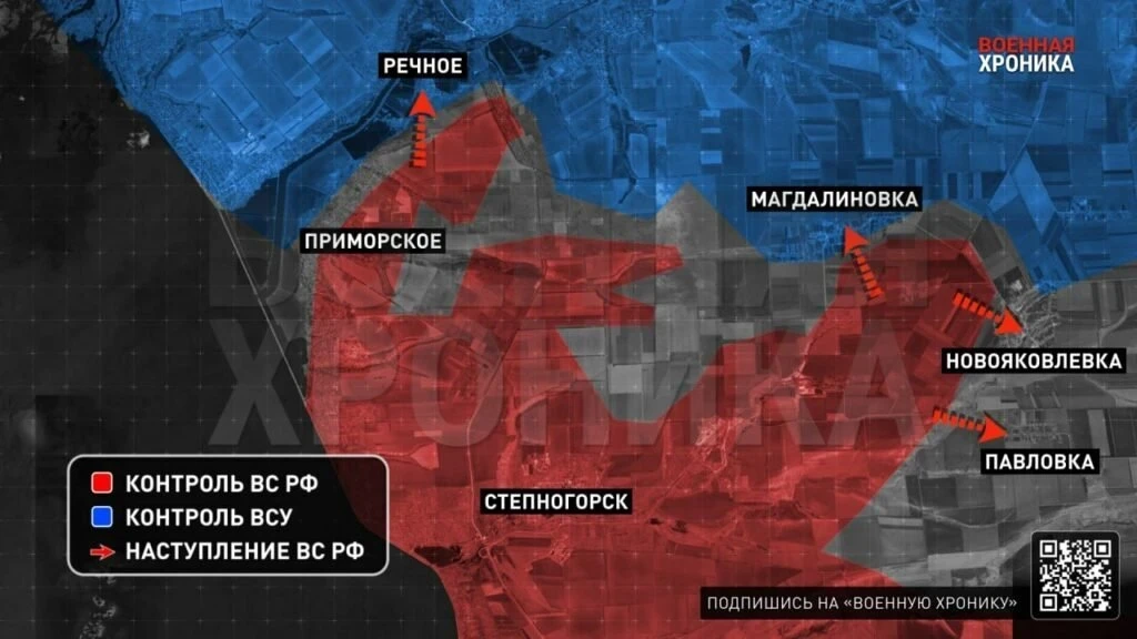 На Запорожском участке продолжаются бои в северной части Приморского и на подступах к Речному и Веселянке. В районе Магдалиновки и Новояковлевки наши группы стараются просочиться в эти сёла. Идут бои в районе Павловки. В Орехове, к которому пробиваются наши войска, сосредоточена довольно крупная группировка ВСУ, она оказывает упорное сопротивление, активно работает дронами. В районе Новоданиловки и Малой Токмачки продолжаются позиционные бои.