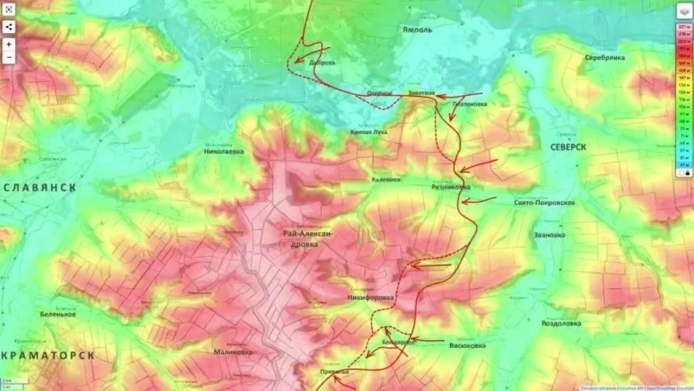 На Краматорско-Славянском направлении обозреватель говорит о признаках начала крупной операции. Сообщается об освобождении Миньковки, прорыве в районе Никифоровки через Бондарное и занятии господствующих высот севернее Закотного. Контроль над этими точками, по его оценке, создает условия для охвата Рай-Александровки и формирования плацдарма на водораздельных высотах восточнее Славянска и Краматорска.