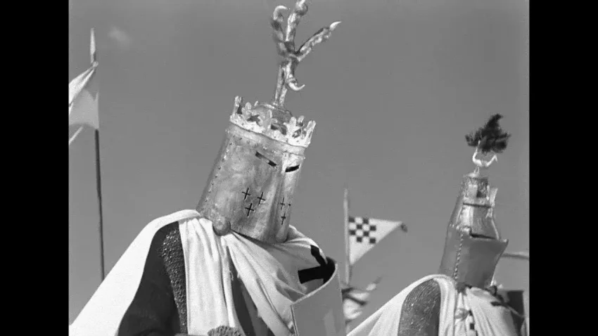 Вот какой шлем придумал Сергей Эйзенштейн великому магистру в кинофильме «Александр Невский». Да еще и корону «флер де лис» на него надел