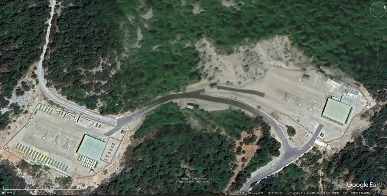 Спутниковый снимок Google Earth: позиция ЗРК MIM-23 I-Hawk в 6 км северо-восточней города Капандритион. Снимок сделан в июне 2024 года