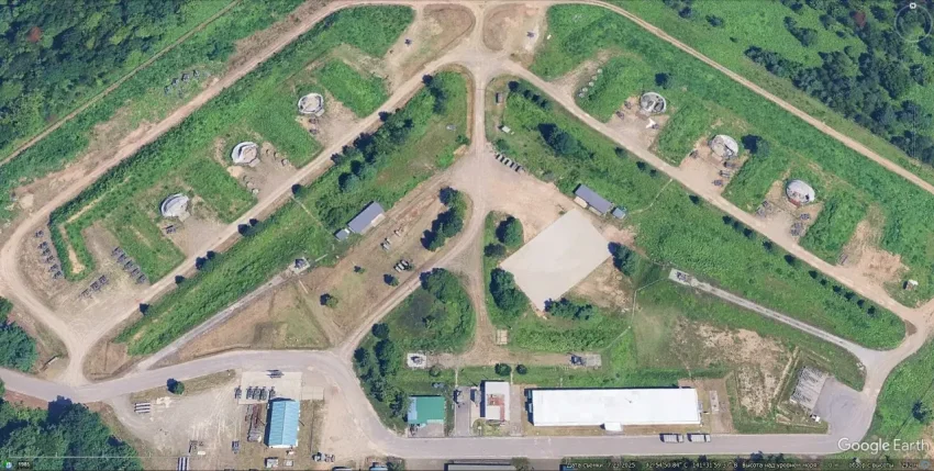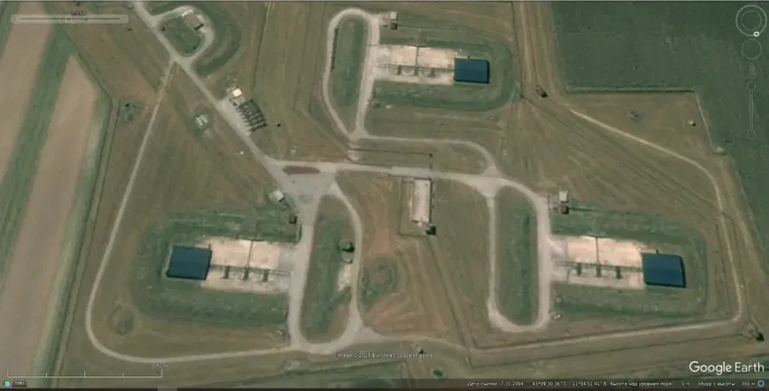 Спутниковый снимок Google Earth: позиция ЗРК MIM-104 Patriot PAC-2 в 6 км южней города Каратея. Снимок сделан в августе 2025 года