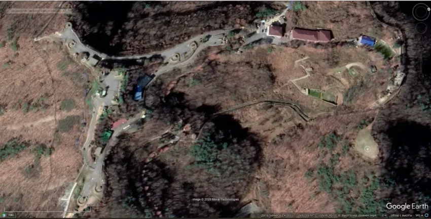 Спутниковый снимок Google Earth: позиция ЗРК MIM-23В I-Hawk восточней Пусана. Снимок сделан в октябре 2022 года