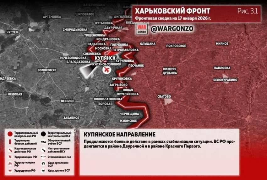 Последние новости » Эксклюзив » ВС России продолжают отражать контратаки ВСУ под Купянском: свежая карта боевых действий на 17 января 2026