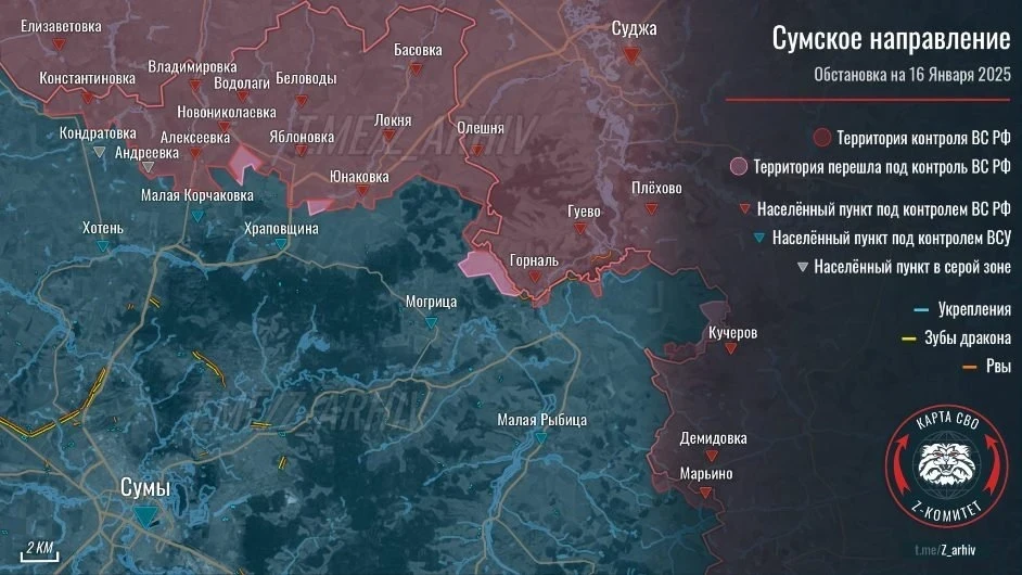Противник пытается контратаковать на северных подступах в районе Радьковки (зафиксировано продвижение ВСУ до 1 км). Ситуация остается сложной: ВСУ стремятся прорваться к Осколу, неся потери на переправах от ударов авиации и БПЛА.