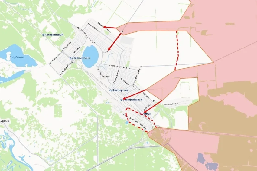 Идут ожёсточенные встречные бои на южной окраине Красного Лимана (район «треугольника»). Российские войска прорвались на северо-восточную окраину города, заняв улицы Широкая, Цимлянская и Островского.