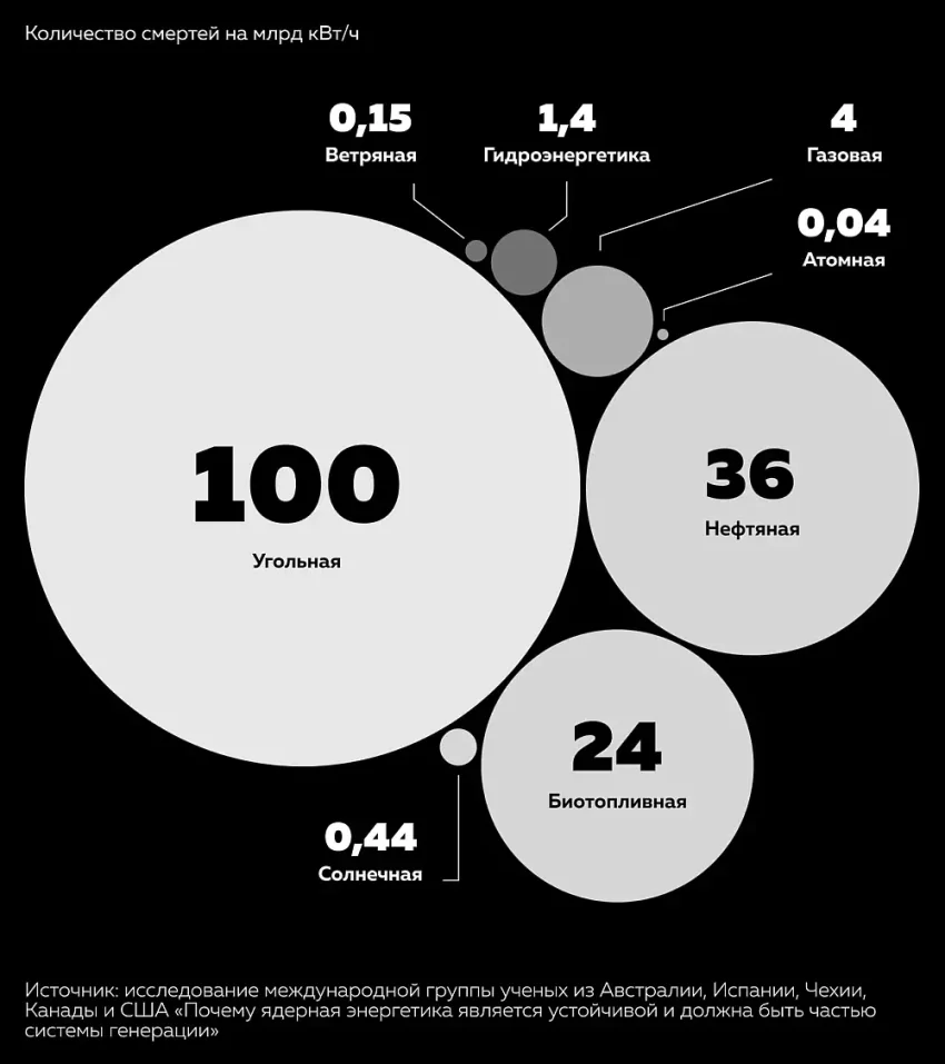 Согласно их данным, за всю свою историю атомная промышленность предотвратила 1,84 млн смертей, связанных с загрязнением атмосферы из-за сжигания ископаемого топлива. Из опубликованного NASA графика видно, что в середине 1980-х, когда произошла авария на Чернобыльской АЭС, глобальная атомная энергетика предотвращала порядка 40 тыс. смертей в год, а к середине нулевых — почти по 80 тысяч.