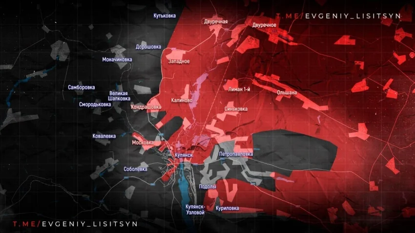 Купянск остаётся одной из самых сложных точек. Источники описывают город как «слоеный пирог»: зоны контроля меняются, идут постоянные встречные бои.