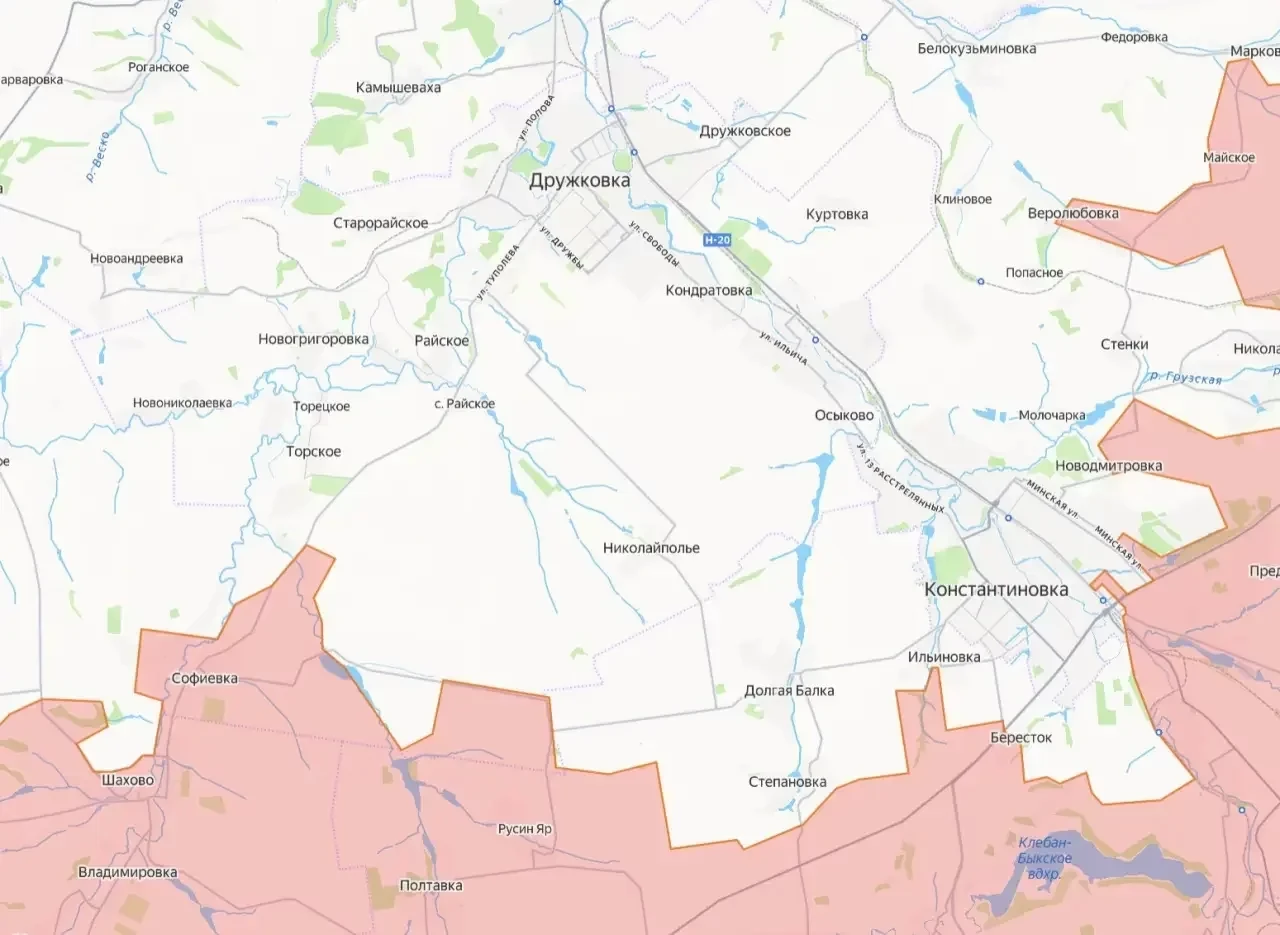 Дополнительное давление на район усиливается за счёт продвижения подразделений группировки «Юг» со стороны Веролюбовки. В совокупности эти действия указывают на формирование второго кольца охвата Константиновки, а также на создание условий для оперативного окружения Алексеево-Дружковки, Дружковки и более чем десяти малых населённых пунктов, которые рискуют оказаться в так называемом «огневом мешке».