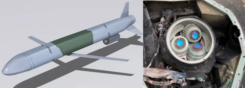 Еще один вариант — установка на БПЛА-камикадзе семейства «Герань» вместо штатной БЧ по одной направляющей с неуправляемой авиационной ракетой (HAP) C-13T или C-13Б, способных пробивать метр бетона и шесть метров грунта, — такие ракеты также будут нарушать структурную целостность опор, делая их более уязвимыми для ОФ БЧ.