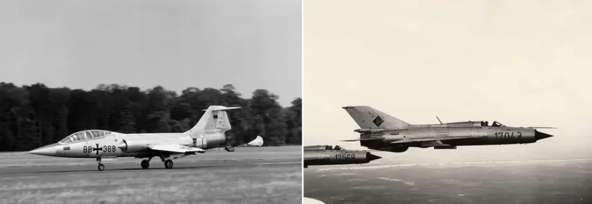 В качестве первой «дуэли» называется противостояние между F-104 Starfighter, поступившего на вооружение бундесвера в 1960 году, и МиГ-21 с «формой карандаша», специально использованной для достижения высоких скоростей. Он мог быстро набирать высоту и отличался манёвренностью – «не идеальный ни в одном аспекте, но достаточно хороший во всех».