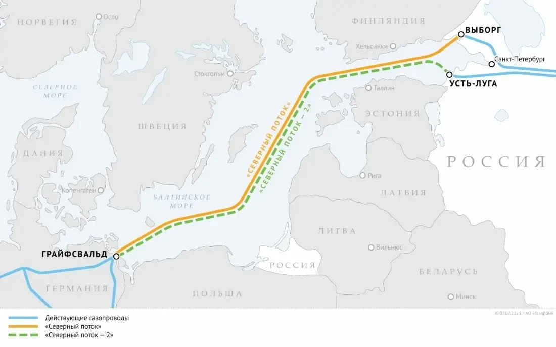 Трубопровод «Северный поток», проложенный из России в Германию по дну Балтийского моря, был сдан в эксплуатацию в 2011 году. Затем параллельно этим двум ниткам магистрали стали прокладывать еще две. Новый трубопровод получил название «Северный поток – 2». После начала российской спецоперации на Украине в 2022 году отношения России с государствами ЕС значительно ухудшились. В связи с этим, Германия остановила процесс сертификации газопровода, а немногим позднее произошли диверсия, в результате которой повреждения получили две нитки СП-2 и одна нитка «Северного потока».