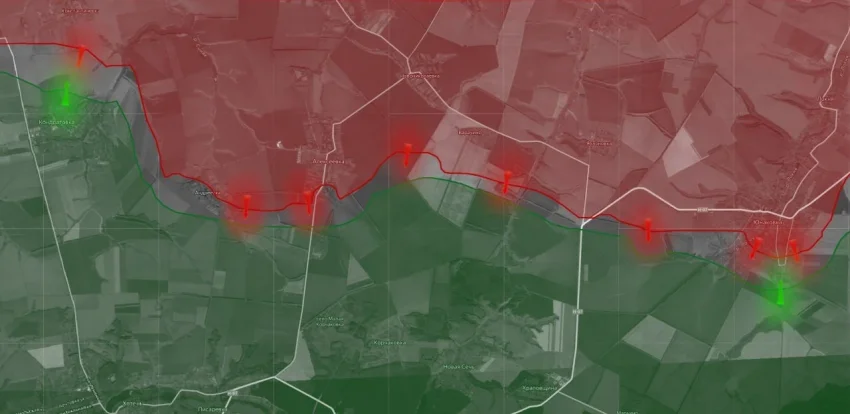 Продолжаются бои в Красном Лимане. Наши военные просачиваются малыми штурмовыми группами глубже в город и бьют по логистике. Наиболее интенсивные бои идут в районе Александровки и Коровьего Яра, где ВС РФ стараются продвинуться к Рубцам и Яцковке. Противник контратакует и удерживает опорники на высотах. Есть тактические успехи к северу в районе Богуславки.