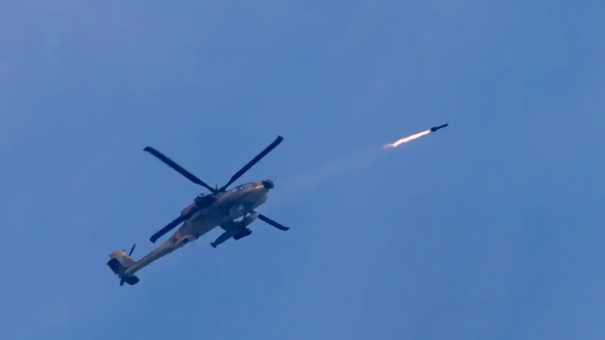 Пуск ракеты AGM-114 Hellfire с израильского боевого вертолёта AH-64A