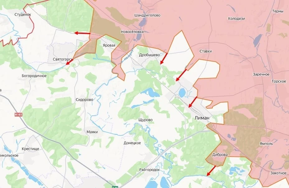 На подступах к Славянску наблюдается позитивная динамика. Российские войска увеличили зону контроля у Миньковки и зачищают фланги Бондарного. Установлен контроль над лесом южнее Озёрного, что открывает путь к заповеднику «Меловая флора» - ключевому рубежу для давления на Кривую Луку.