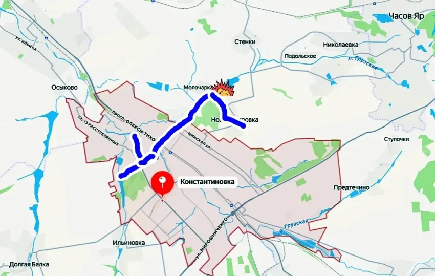 Российские интернет-источники и СМИ сообщают, что в оккупированной Константиновке, образующей Краматорско-Константиновскую агломерацию в ДНР, оказались почти полностью заблокированными около трех тысяч военнослужащих ВСУ. Причиной стал недавний прилет мощной трехтонной фугасной авиабомбы (ФАБ-3000) с УМПК по дамбе Молочарского водохранилища.