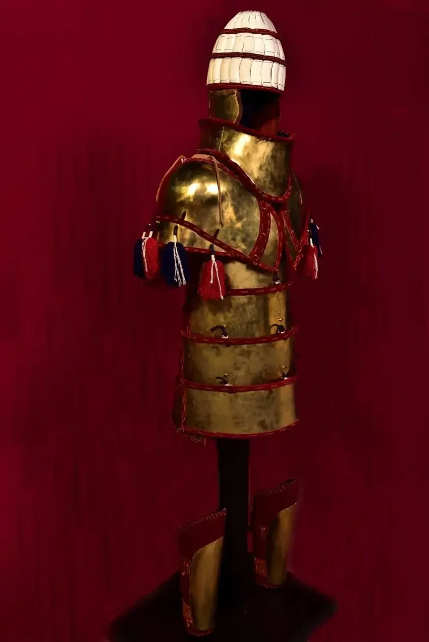 • шесть бронзовых пластин, прикреплённых к нижней кромке панциря — три спереди и три сзади, образующих подобие фартука.