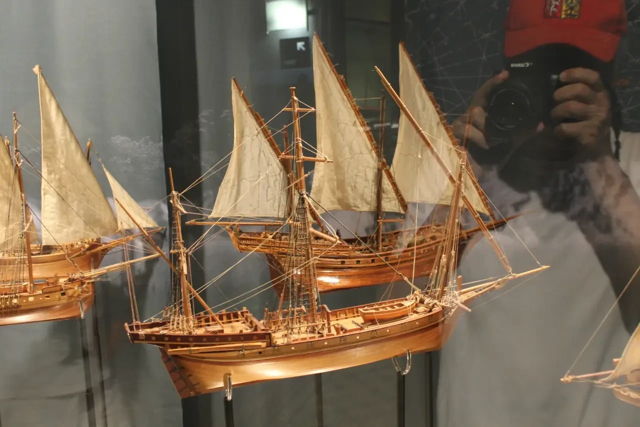 В частности здесь очень много моделей судов с латинскими косыми парусами, являвшимися характерной чертой парусников Средиземноморья
