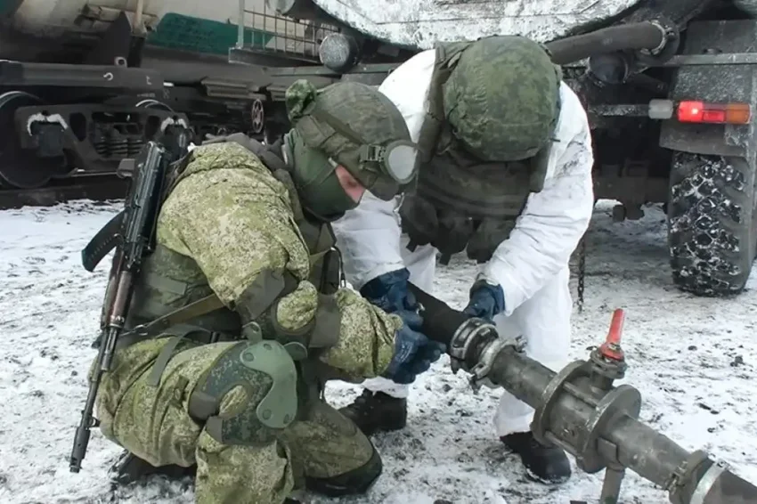 Для доставки разнообразных ГСМ в зону проведения Спецоперации и последующего их распределения используются все доступные средства. Так, магистральные перевозки осуществляются по железной дороге. Кроме того, развёрнуты полевые трубопроводы высокой производительности.