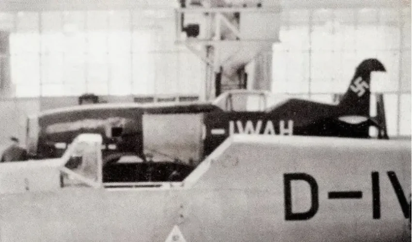 Messerschmitt Me 209 V-2 D-IWAH, в ангаре на дальнем плане