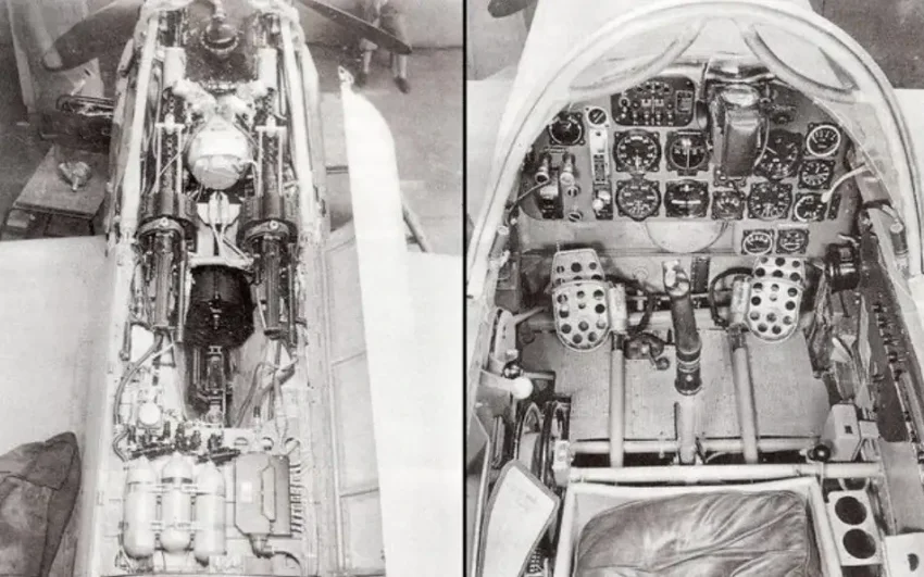 Me 209 V-4, хорошо видны пулемёты MG.17 и оснащение пилотской кабины