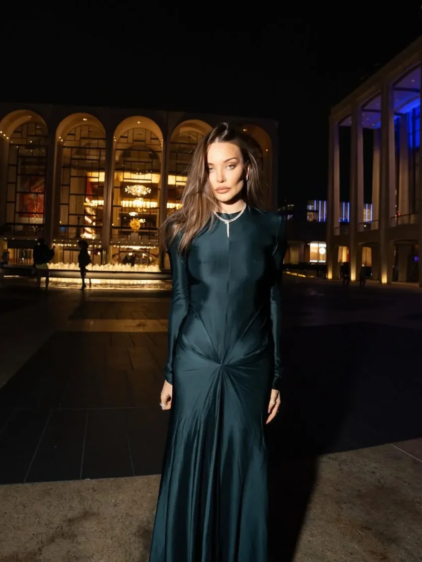 Коновалова опубликовала в соцсетях фотографии с праздника, на которых она позирует в длинном платье на молнии. Модель, которую ранее критиковали за неуместный внешний вид, расстегнула платье и фотографировалась в различных позах. Образ дополнили колье с бриллиантами и сумка Hermes.