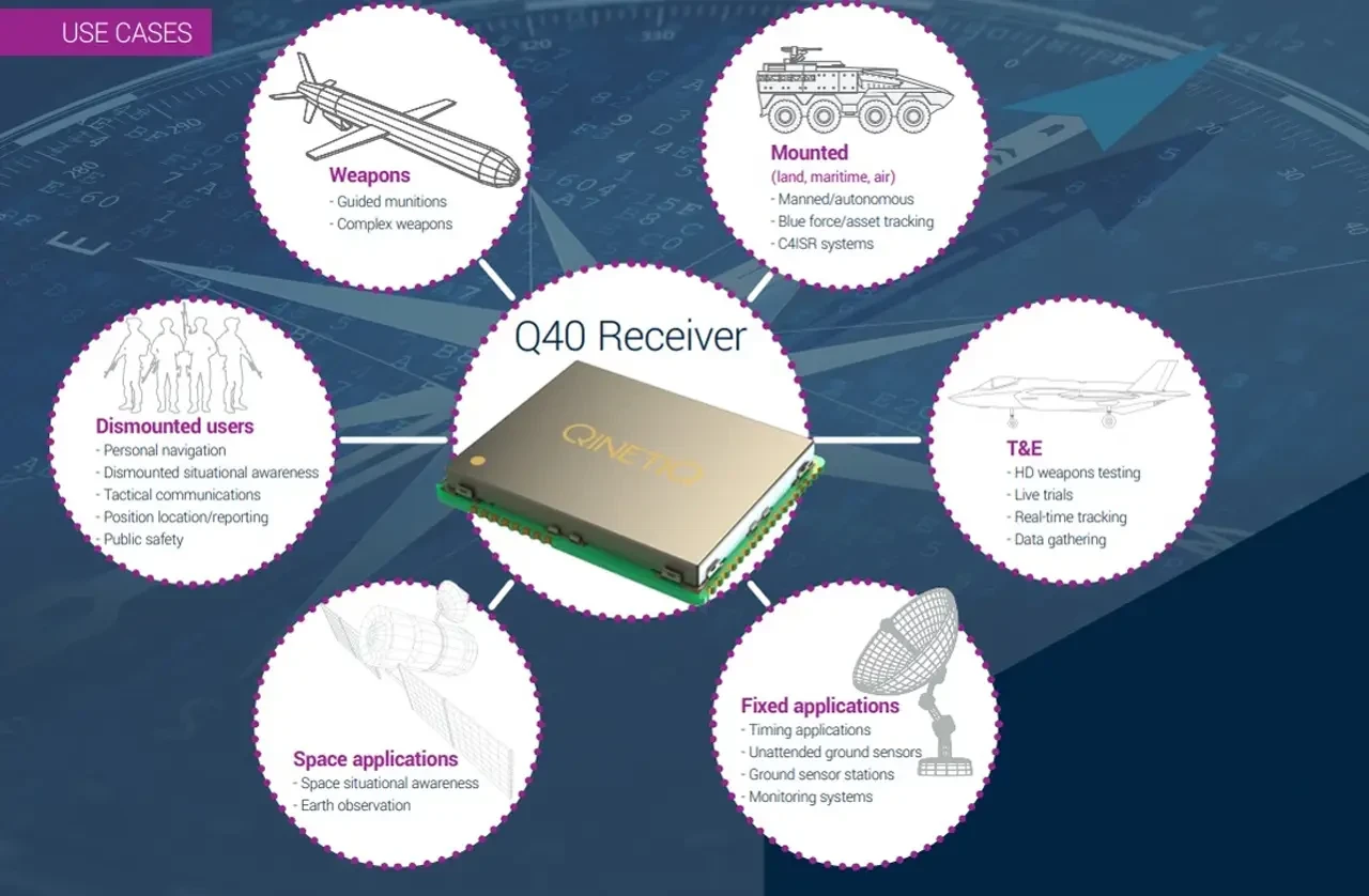 Ресивер Q40 обеспечивает передачу многоуровневых данных о местоположении, его смене с течением времени (PNT) с высокой степенью синхронизации, позволяя войскам, транспортным средствам и беспилотникам поддерживать навигацию даже в условиях радиоэлектронной борьбы.