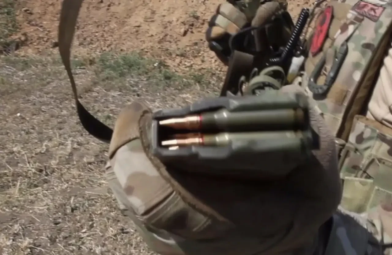 Кадр из видео-демонстрации действия для журналистов патронов СЦ-226 на полигоне. Патроны в магазине автомата