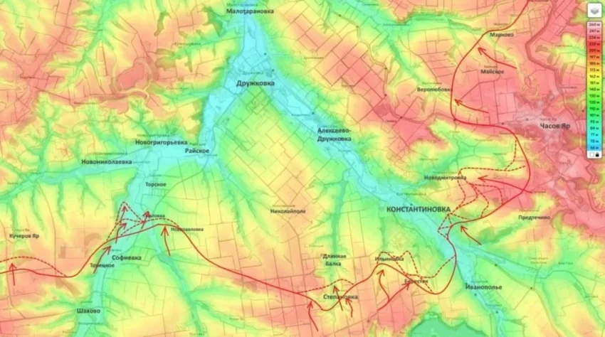 Активные боевые действия продолжаются и на Константиновском направлении в Донецкой Народной Республике. По данным из открытых источников, российские подразделения за сутки продвинулись на запад от Константиновки, установив контроль над территорией площадью около 26 квадратных километров.