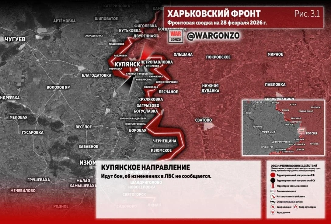 Карта боевых действий на Купянском направлении: свежие данные на 28.02.2026