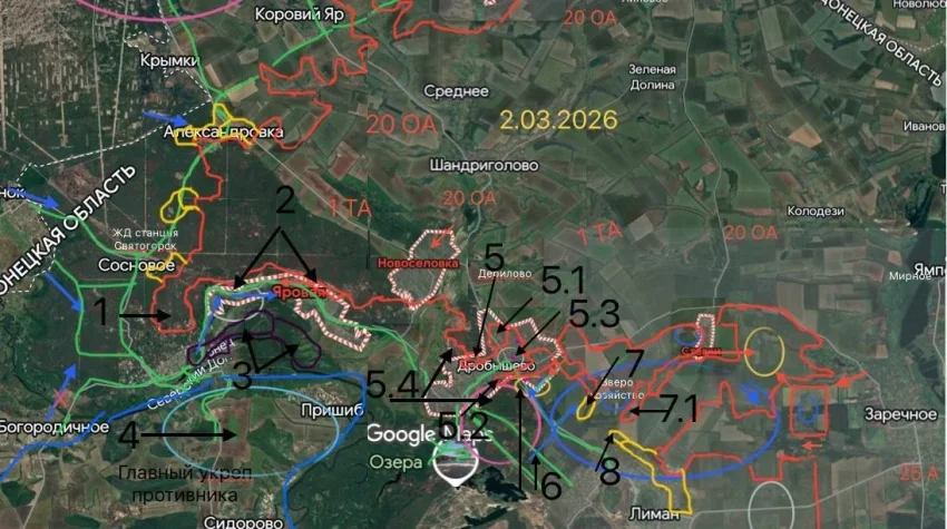 Штурмовые группы окончательно овладели окраинами Лимана и установили контроль над стратегически важными лесополосами вдоль дороги на Вильчу. Наши ВКС и артиллерия наносят массированные удары по местам дислокации ВСУ южнее Старицы, подготавливая почву для броска в сторону Избицкого. Активные действия на этом фронте призваны сковать силы противника и не допустить их переброски под Купянск или Красный Лиман.