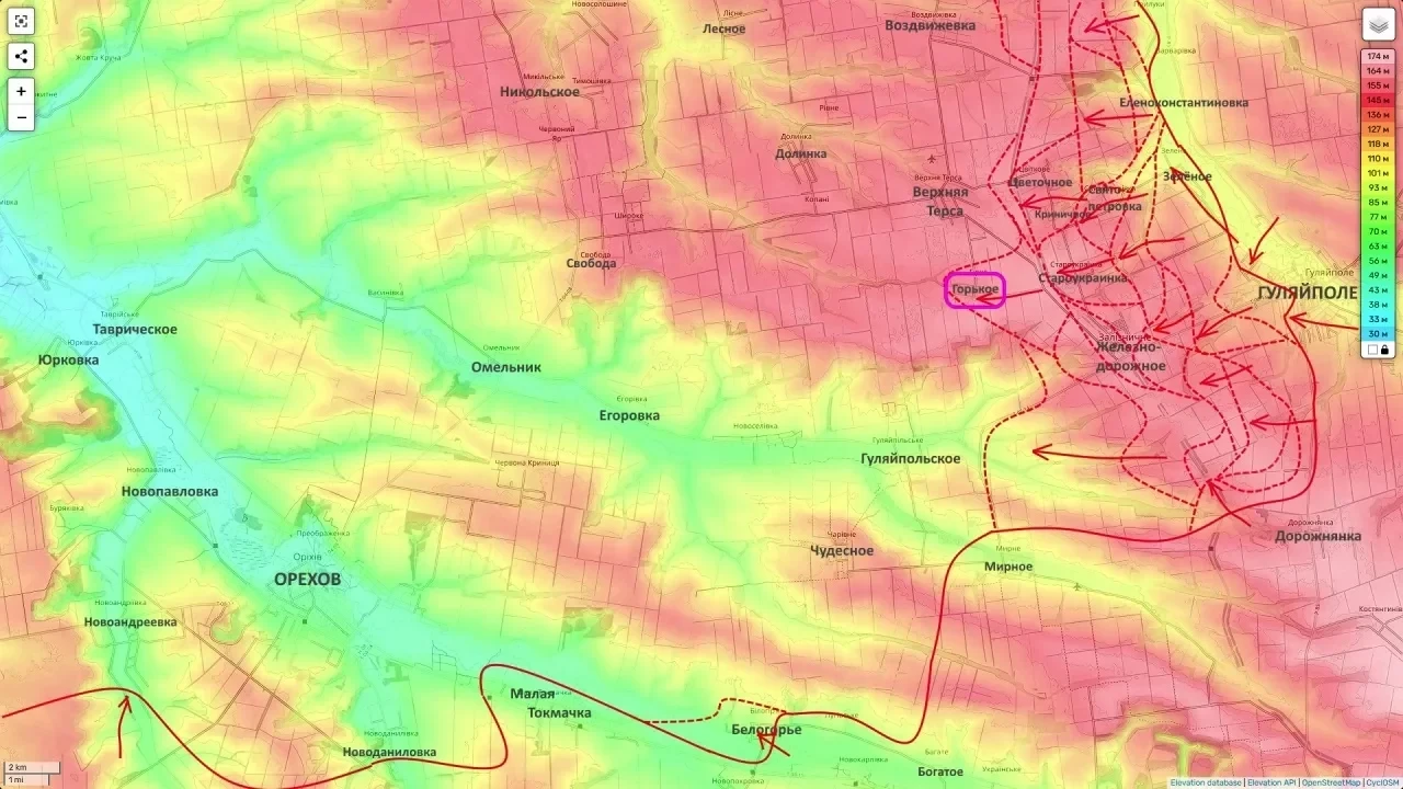 В зоне ответственности 35-й и 5-й армий на Гуляйпольском направлении наблюдается уверенное и методичное продвижение. После освобождения населенного пункта Горькое и зачистки прилегающих лесополос южнее, российские штурмовые отряды ведут ожесточенные бои за Верхнюю Терсу.