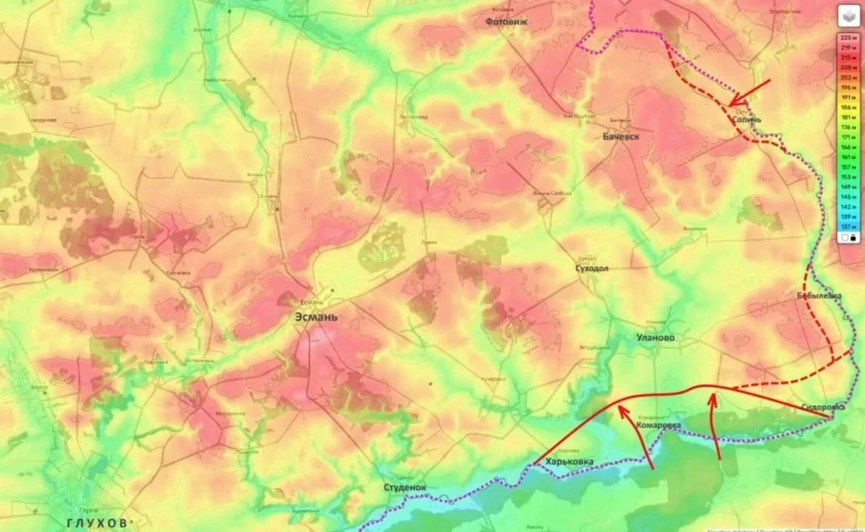 В целом, как севернее Сум, так и в районе Краснополья, российские войска продвигаются небольшими шагами, планомерно создавая неразрешимые проблемы для логистики и обороны противника.