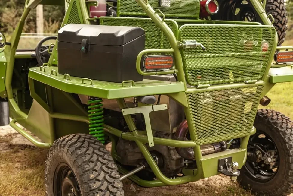 Конструкция «Алабая» демонстрирует ряд решений, направленных на повышение живучести и ремонтопригодности именно в условиях интенсивной эксплуатации на фронте. Одним из наиболее значимых изменений стал переход с силовых агрегатов отечественного автопрома на китайский лицензионный двигатель Honda мощностью 150 лошадиных сил.