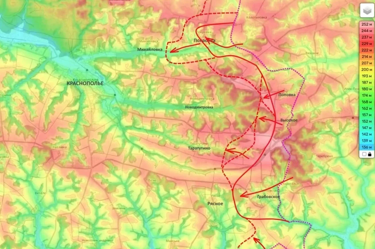 Согласно данным Подоляки, российские военные также начали бои за расположенные в районе сумского поселка Краснополье населенные пункты Михайловка и Таратутино.